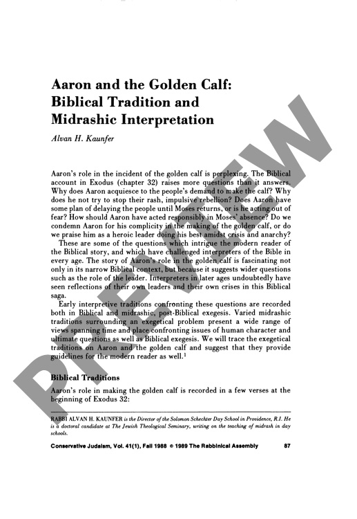 Aaron and the Golden Calf: Biblical Tradition and Midrashic Interpretation