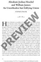 Abraham Joshua Heschel and William James: An Unorthodox but Edifying Union