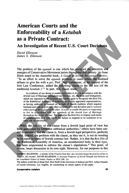American Courts and the Enforceability of a Ketubah as a Private Contract: An Investigation of Recent US Court Decisions
