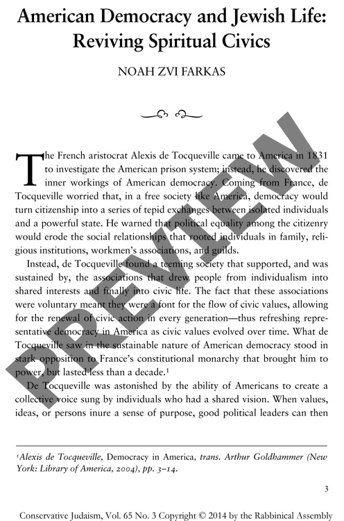 American Democracy and Jewish Life: Reviving Spiritual Civics