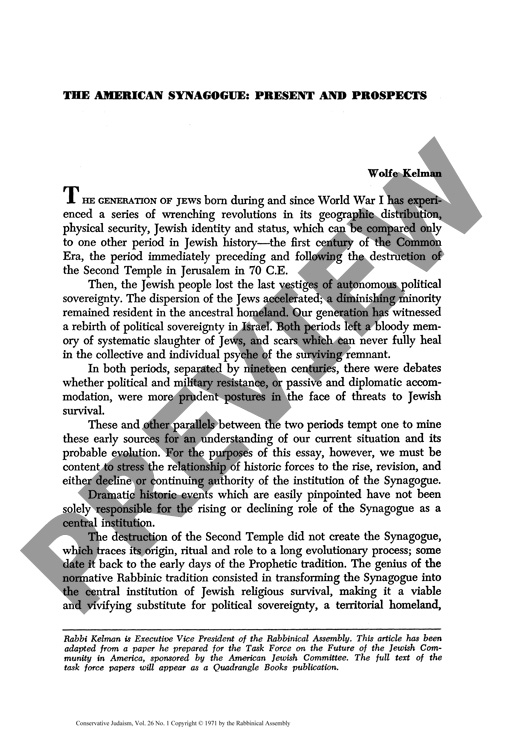 The American Synagogue: Present and Prospects