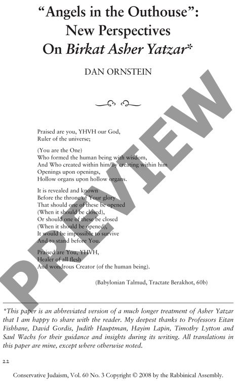 "Angels in the Outhouse": New Perspectives on Birkat Asher Yatzar