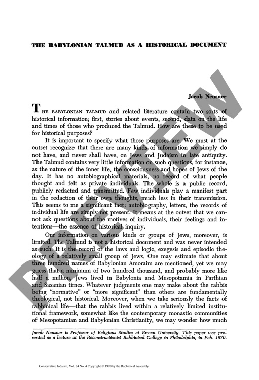 By Jacob Neusner for CJ vol. 24 no. 4, Summer 1970