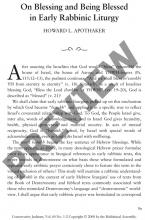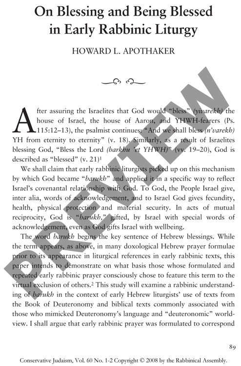On Blessing and Being Blessed in Early Rabbinic Liturgy