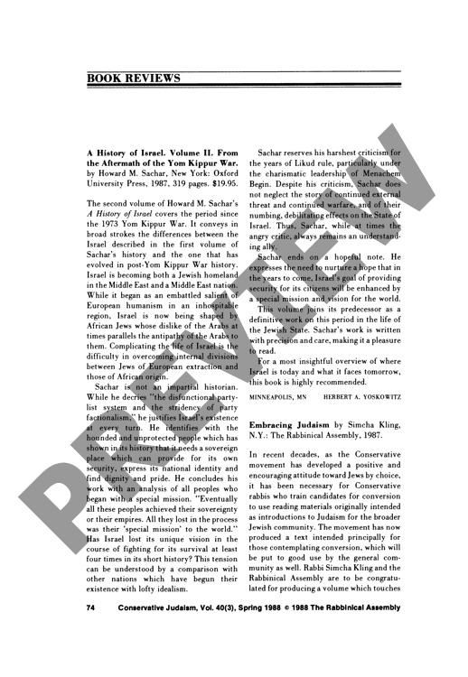 By Multiple Authors for CJ vol. 40 no. 3, Spring 1988