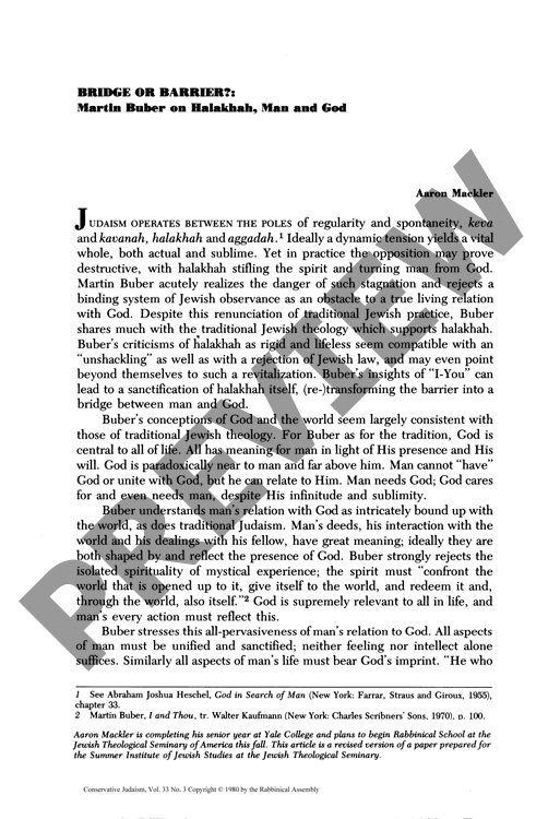 Bridge or Barrier: Martin Buber on Halakhah, Man and God