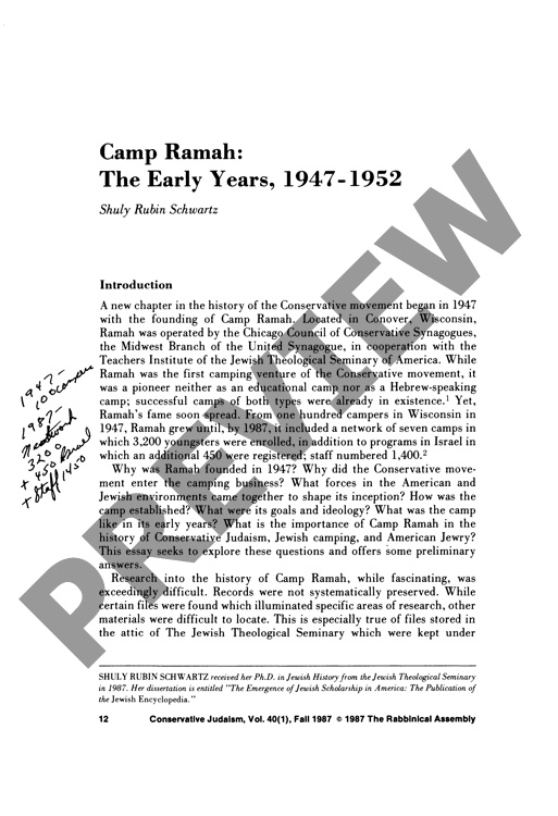 Camp Ramah: The Early Years, 1947-1952