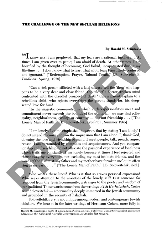 By Harold M. Schulweis for CJ vol. 32 no. 3, Summer 1979