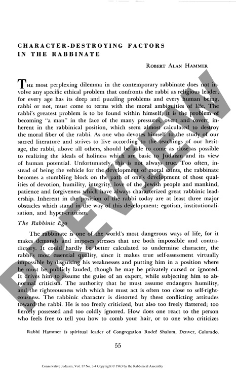 Character-Destroying Factors in the Rabbinate