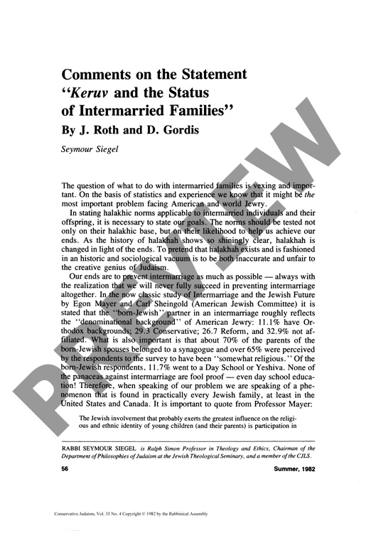 Comments on the Statement: Keruv and the Status of Intermarried Families