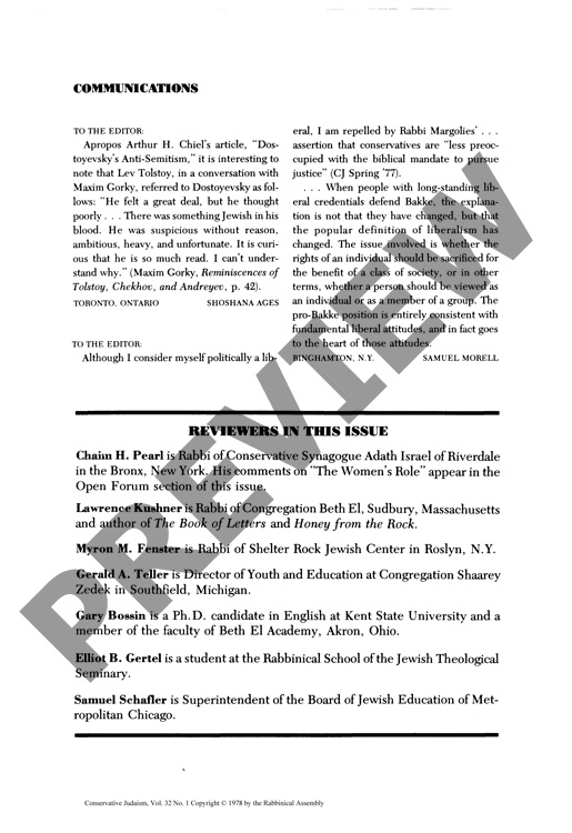 By Multiple Authors for CJ vol. 32 no. 1, Fall 1978