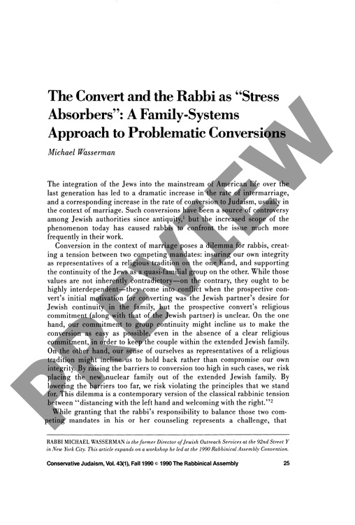 The Convert and the Rabbi as Stress Absorbers: A Family-Systems Approach to Problematic Conversions