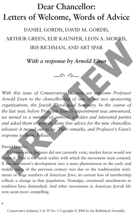 $1.99Posted on: Saturday October 26, 2013By Daniel Gordis, David M. Gordis, Arthur Green, Elie Kaunfer, Leon A. Morris, Iris Richman, and Art Spar for CJ vol. 59 no. 1, Fall 2006