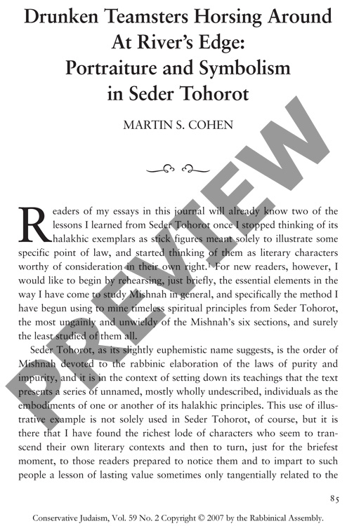 Drunken Teamsters Horsing Around at River’s Edge: Portraiture and Symbolism in Seder Tohorot