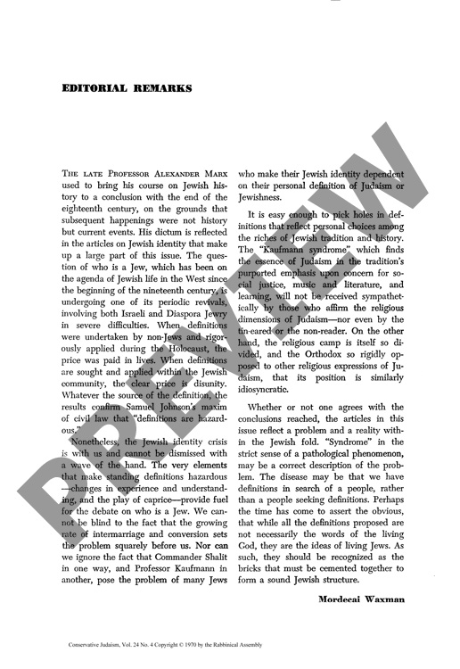 By Mordecai Waxman for CJ vol. 24 no. 4, Summer 1970