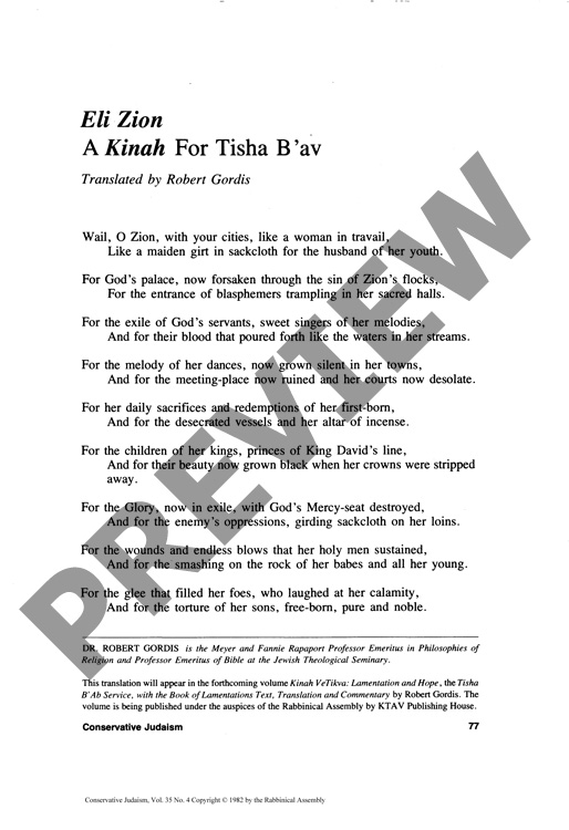 Eli Zion: A Kinah For Tisha B'av: Translation Poetry