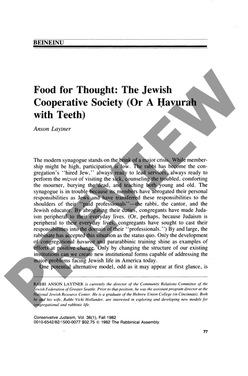 Food for Thought: The Jewish Cooperative Society (Or A Havurah with Teeth)