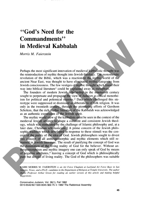 God's Need for the Commandments: in Medieval Kabbalah