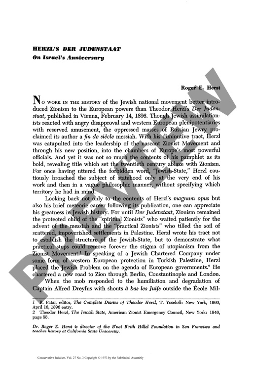 Herzl's Der Judenstaat: On Israel's Anniversary