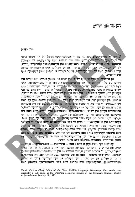 By Yudel Mark for CJ vol. 28 no. 1, Fall 1973