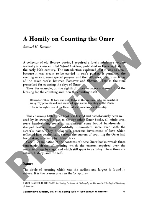 By Samuel Dresner for CJ vol. 41 no. 3, Spring 1989