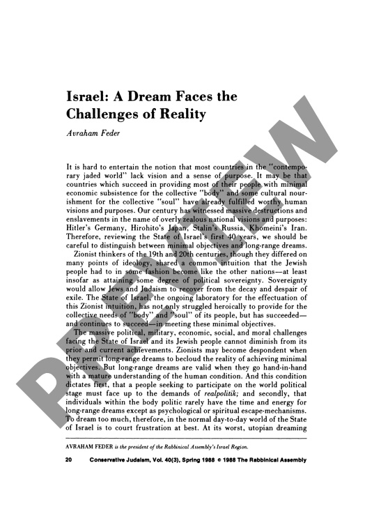 By Avraham Feder for CJ vol. 40 no. 3, Spring 1988