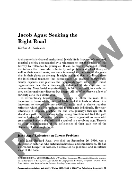 Jacob Agus: Seeking the Right Road