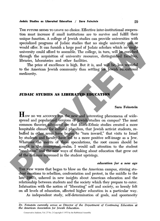 By Sara Feinstein for CJ vol. 27 no. 2, Winter 1973