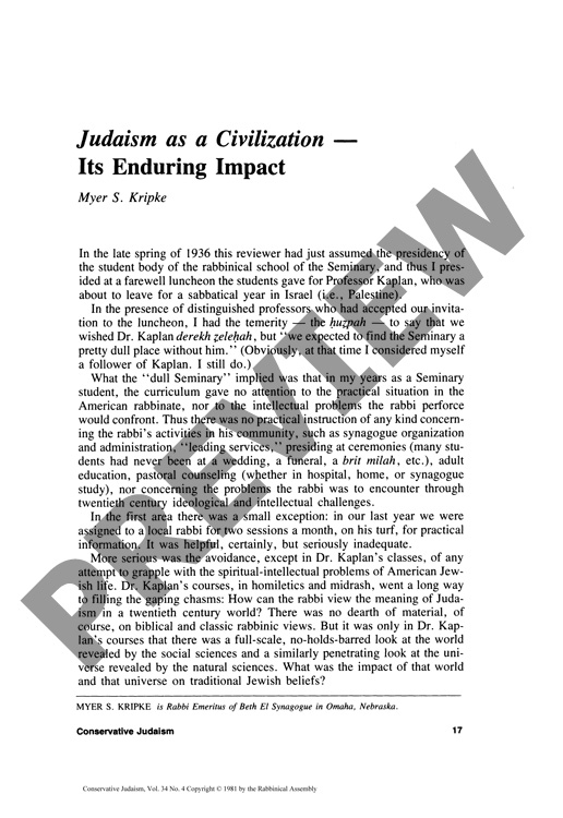 Judaism as a Civilization: Its Enduring Impact