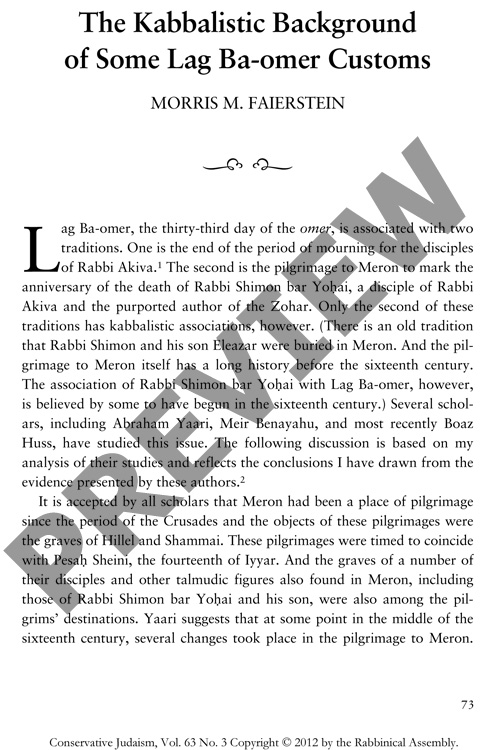 The Kabbalistic Background of Some Lag Ba-omer Customs
