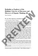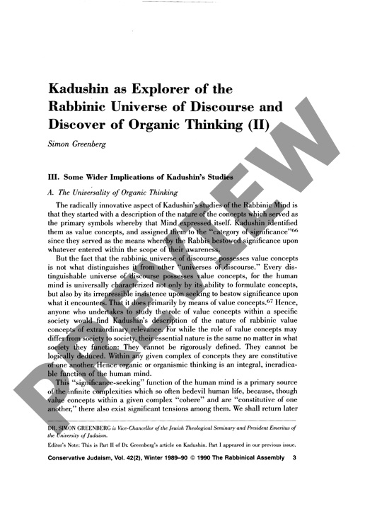 Kadushin as Explorer of the Rabbinic Universe of Discourse and Discover of Organic Thinking (II)