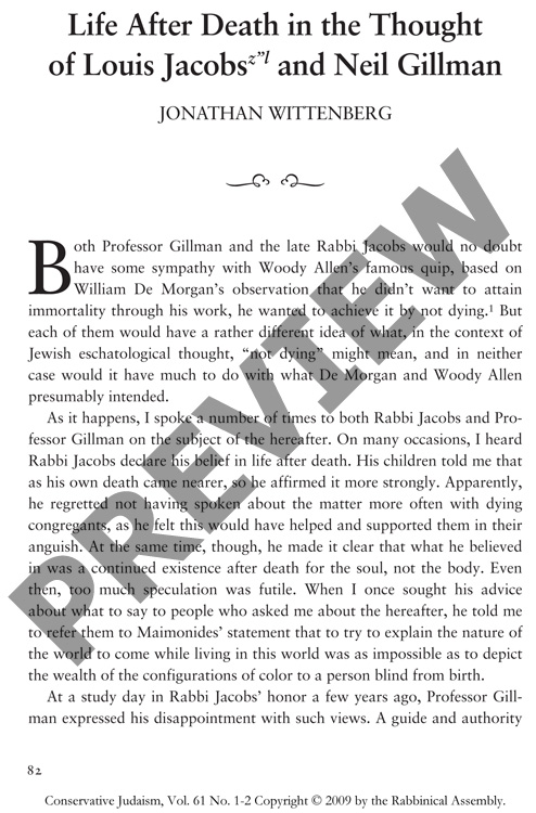Life After Death in the Thought of Louis Jacobs and Neil Gillman