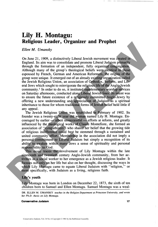 Lily H Montagu: Relgious Leader, Organizer and Prophet