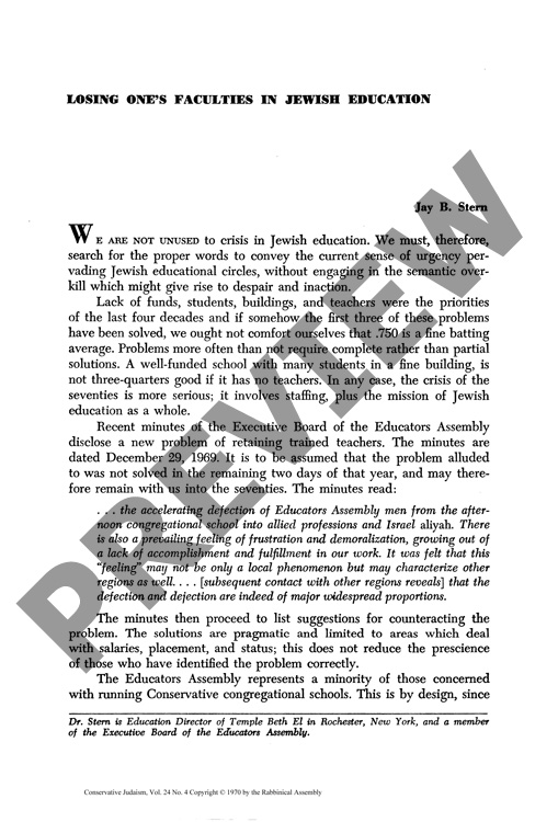 Losing One's Faculties in Jewish Education
