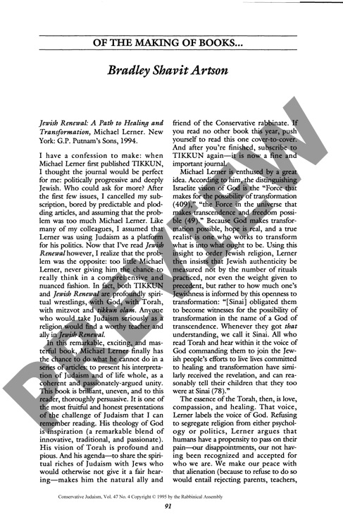 By Bradley Shavit Artson for CJ vol. 47 no. 4, Summer 1995