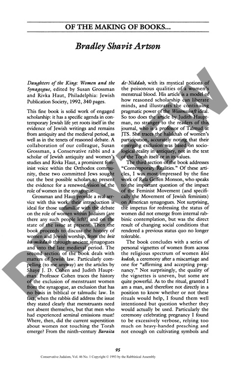 By Bradley Shavit Artson for CJ vol. 46 no. 1, Fall 1993