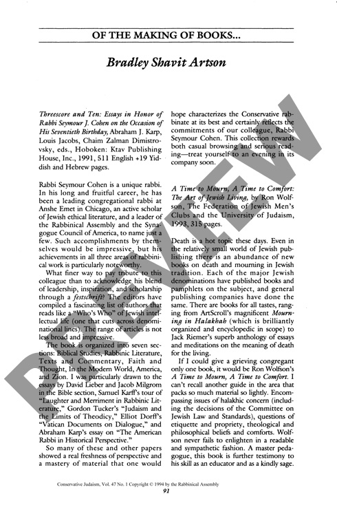 By Bradley Shavit Artson for CJ vol. 47 no. 1, Fall 1994