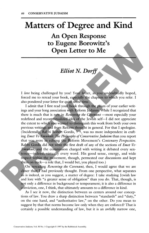 Matters of Degree and Kind: An Open Response to Eugene Borowitz's Open Letter to Me