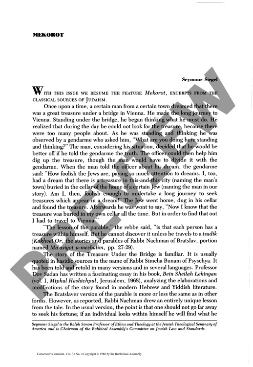 By Seymour Siegel for CJ vol. 33 no. 4, Summer 1980