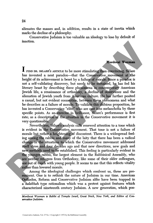 Morale and Commitment: Reactions to a Critique of the Conservative Movement