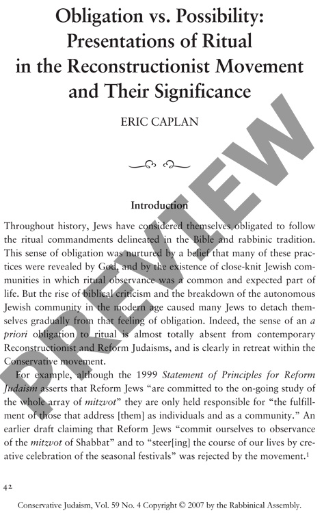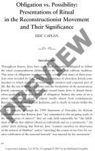 Obligation vs. Possibility: Presentations of Ritual in the Reconstructionist Movement and Their Significance