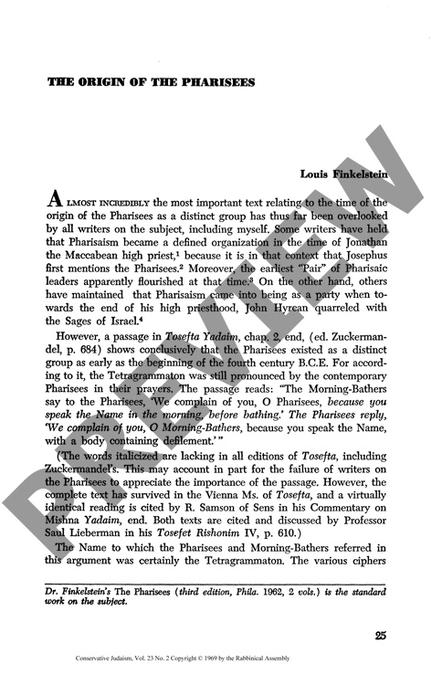 The Origin of the Pharisees