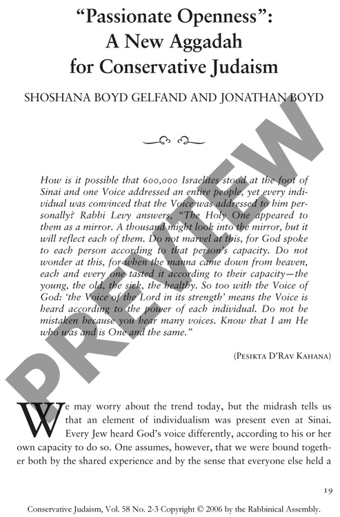 "Passionate Openness": A New Aggadah for Conservative Judaism