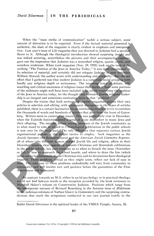 By David Wolf Silverman for CJ vol. 10 no. 2, Winter 1956