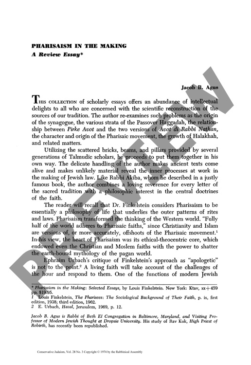 By Jacob Agus for CJ vol. 28 no. 3, Spring 1974