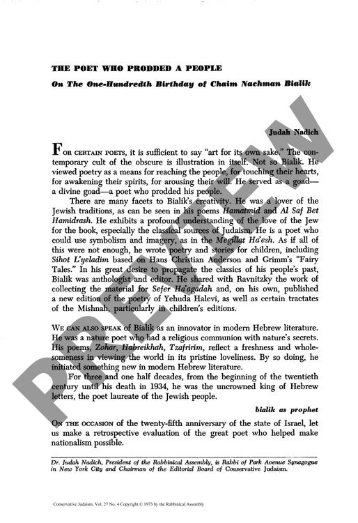 The Poet Who Prodded A People: On The One-Hundredth Birthday of Chaim Nachman Bialik