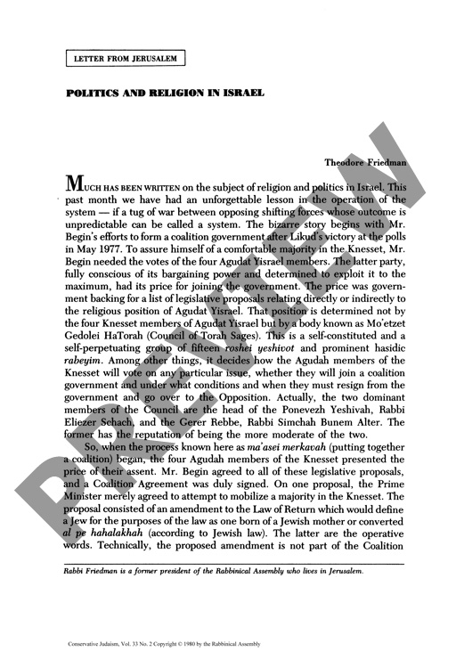 By Theodore Friedman for CJ vol. 33 no. 2, Winter 1980