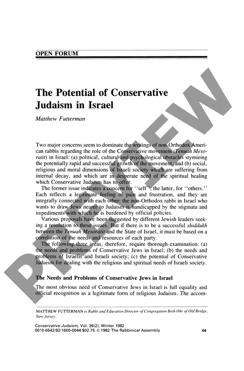 The Potential of Conservative Judaism in Israel