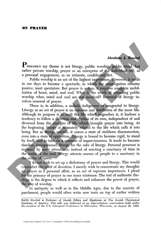 By Abraham Joshua Heschel for CJ vol. 25 no. 1, Fall 1970