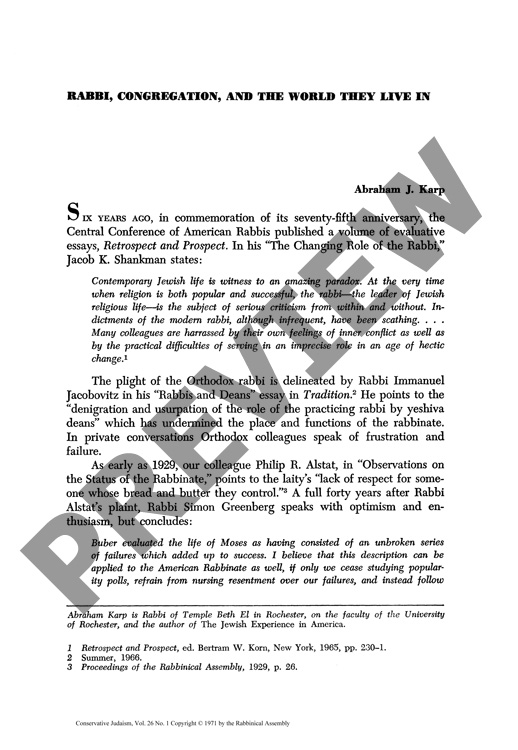 By Abraham Karp for CJ vol. 26 no. 1, Fall 1971